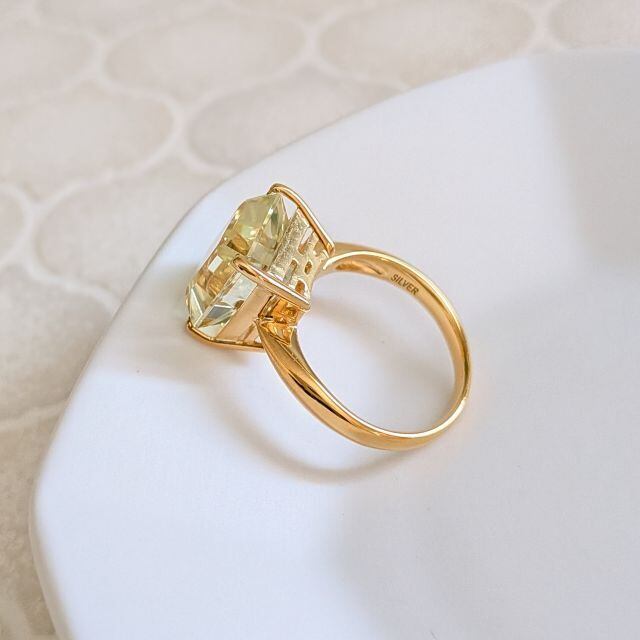 #シトリンリング #エメラルドカット #天然石リング #大粒シトリン #シルバーリング #ゴールドメッキリング #誕生石11月 #パワーストーンリング