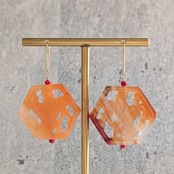 Hexagon-shaped earrings featuring hand-carved carnelian