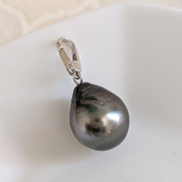 天然の黒蝶真珠はエクボや小キズがあるものの、テリが良く美しい珠を