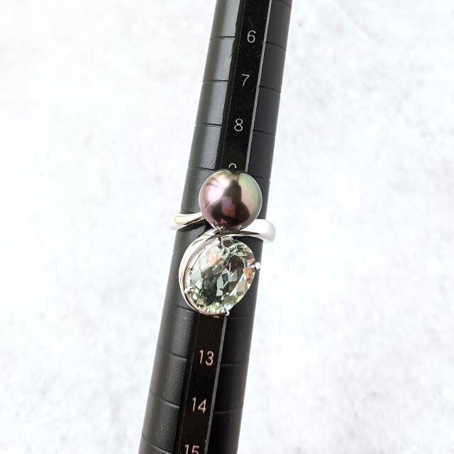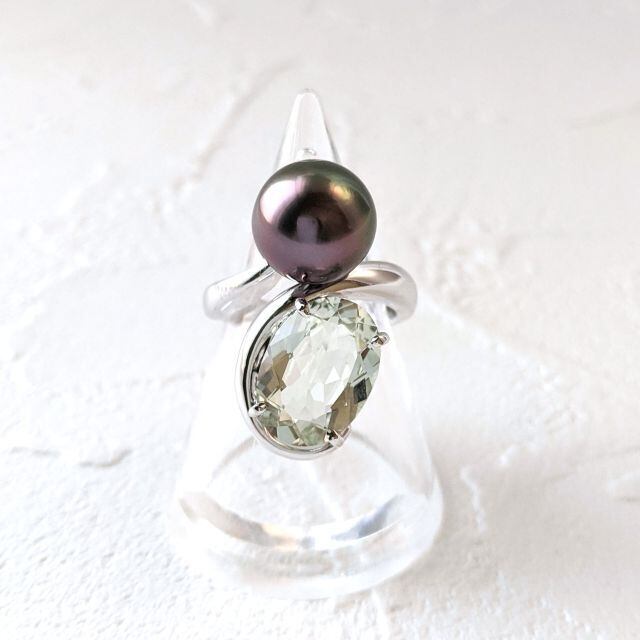 #黒蝶真珠 #グリーンアメジスト #一点物ジュエリー #ハンドメイドリング #ジュエリーとり #シルバーリング