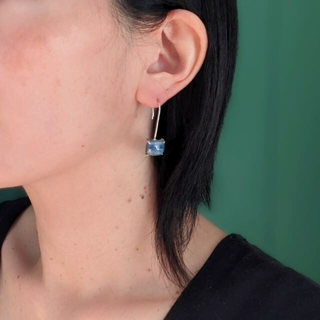 蒼く輝くカイヤナイトのピアスが、耳元を華やかに彩ります。