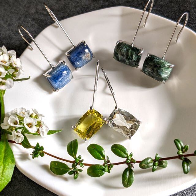 #KyaniteEarrings #BlueGemstone #SimpleEarrings #NaturalStoneJewelry #CabochonCut #OneOfAKindJewelry