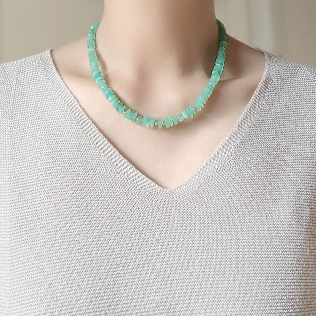 クリソプレーズネックレス/K18WG K14WG SV Chrysoprase Necklace