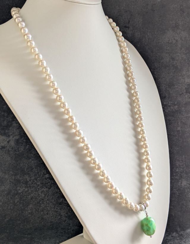 #naturalstonenecklace #greengemstone #togglenecklace #removablependant #2wayjewelry #pearlcompatible