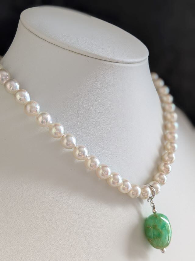#天然石ネックレス #グリーンジェム #トグルネックレス #ペンダント取り外し可 #2WAYアクセサリー #パールと相性抜群
